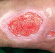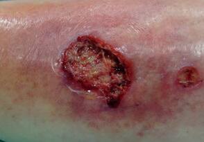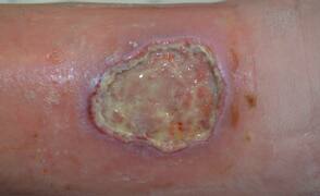 A venous leg-ulcer is a full-thickness defect of the skin that persists due to venous disease of the lower leg. Venous ulceration is a chronic condition that is generally considered to result from venous occlusion, incompetent calf muscle pump function or venous valvular failure, giving rise venous hypertension.